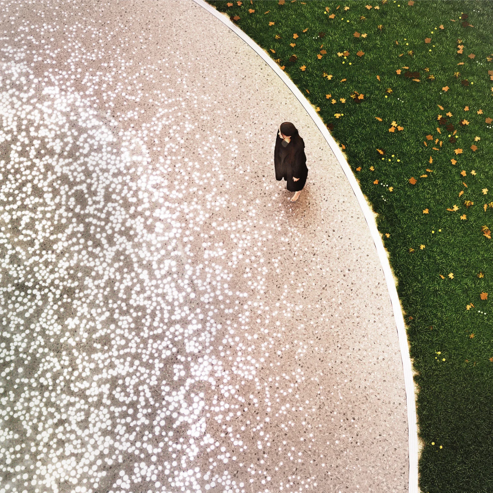 Um die überwältigende Menge der Demonstranten zu visualisieren, wird der Boden des Denkmals mit einem Mosaik aus 70.000 lichtreflektierenden Rundscheiben belegt. Jede dieser Scheiben steht symbolisch für einen der friedlichen Demonstranten. Tagsüber spiegelt das Mosaik das Licht des Himmels und der Sonne wider, reflektiert in vielen Einzelpunkten seine Umgebung und bringt die Wasserfläche von innen heraus zum Leuchten. Nachts wird das Mosaik in dem sanften und warmen Licht von hunderten Lichtpunkten erstrahlen, was an die Kerzen erinnert, die von den Demonstranten getragen wurden.